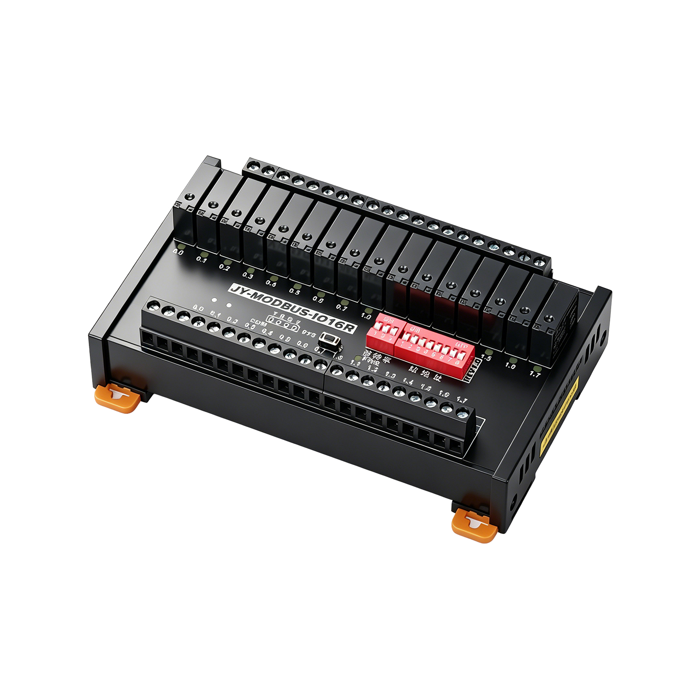 JY-MODBUS-IO16R 为工业级 MODBUS RTU 远程 I/O 模块,搭载 16 路隔离数字输入与 16 路继电器输出,支持 NPN/PNP 信号兼容。标配 RS485 通讯接口,依托拨码快速配置设备地址与波特率,具备电源防反接、总线掉线保护功能,结构紧凑适配导轨安装,广泛适用于自动化系统开关量采集与分布式控制场景。