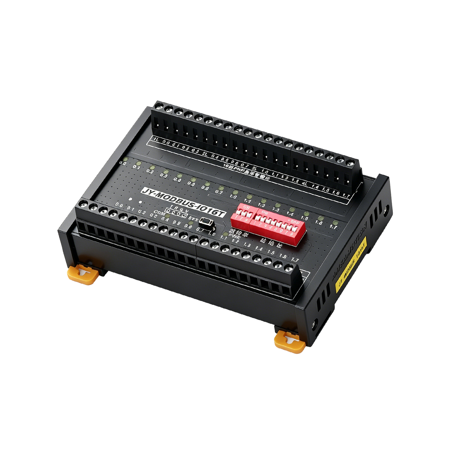 本款 JY-MODBUS-IO16T 为工业级远程 I/O 模块,搭载 16 路隔离数字量输入与 16 路 PNP 晶体管输出。采用 RS485 接口,兼容 MODBUS RTU 通讯协议,支持拨码快速配置设备地址与波特率。具备电源防反接、光电隔离防护设计,适配标准导轨安装,性能稳定,广泛应用于自动化设备 IO 扩展及开关量采集控制场景。
